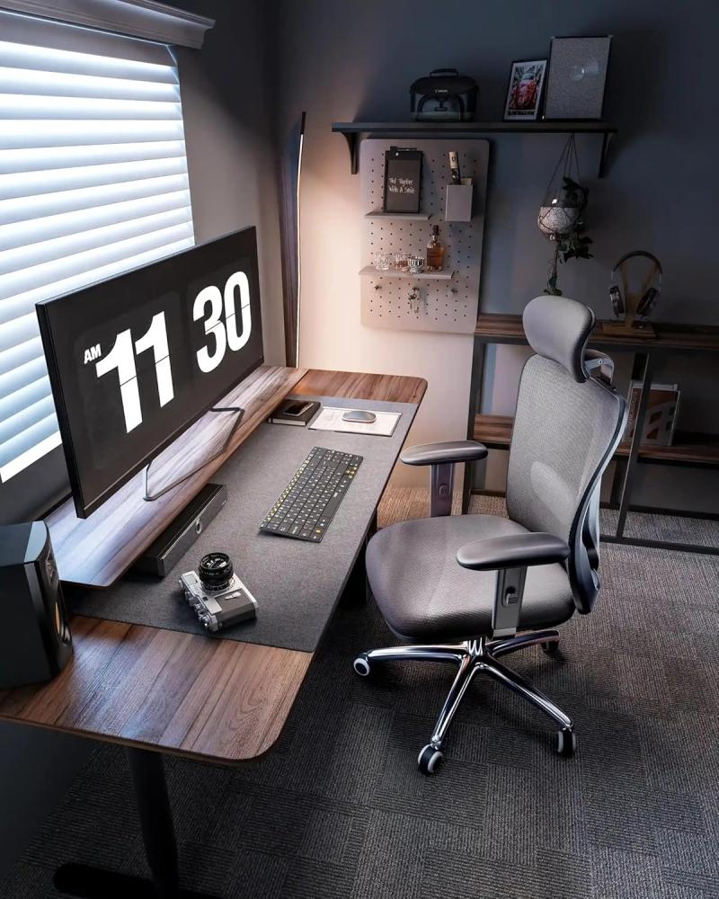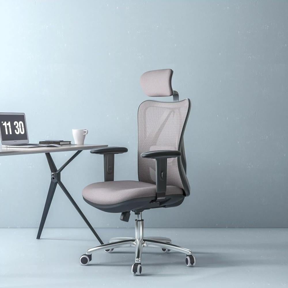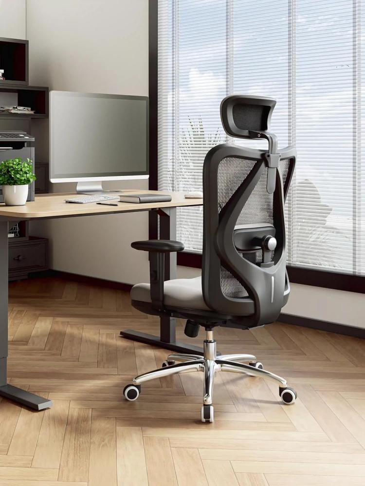 كرسي مكتب مريح M18GY من ووديز، كرسي كمبيوتر مع مسند راس قابل للتعديل ودعم لاسفل الظهر، كرسي دوار عالي الظهر للمنزل والمكتب (رمادي داكن)